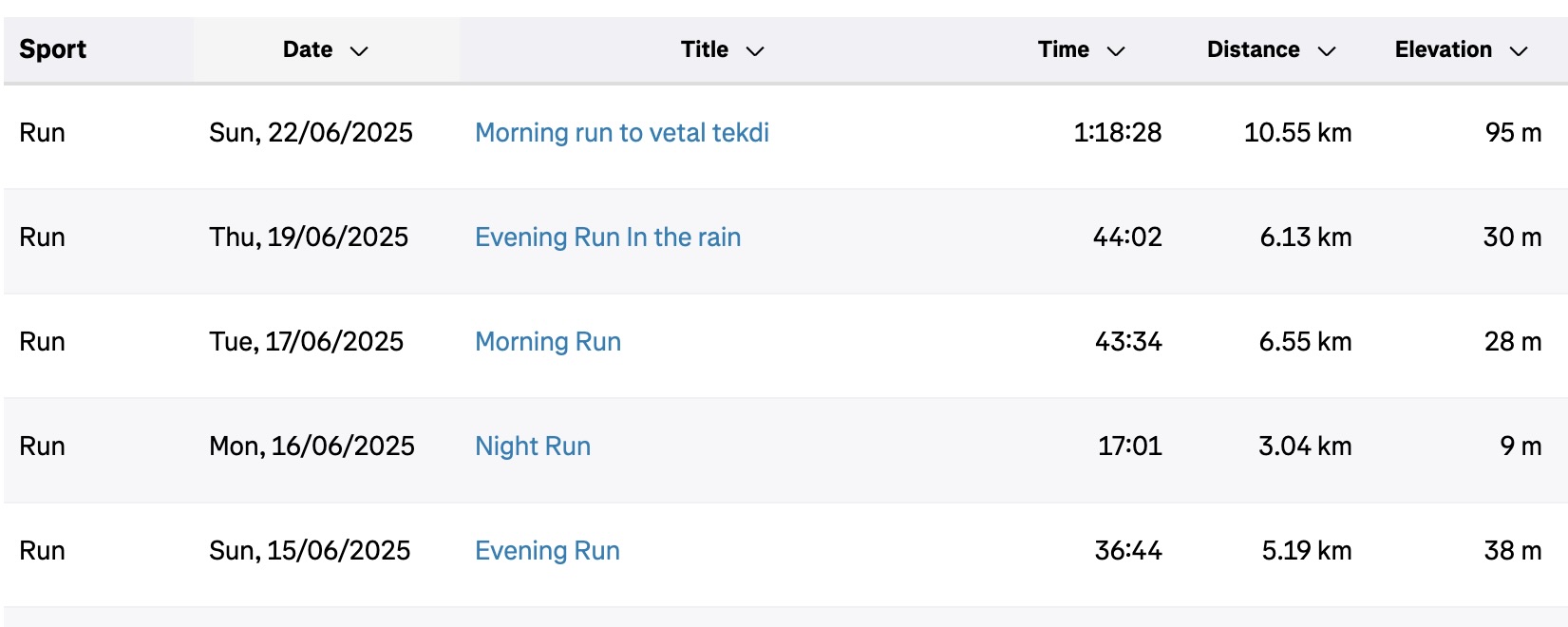 Thursday Evening - Dancing in the Rain Couldn’t wake up in the morning (again), but the evening brought rain and an opportunity. 6km in the rain turned out to be one of those magical runs you remember forever. There’s something about running in the rain that makes you feel alive in a completely different way. The breathing was on point, the pace felt natural, and the rain made everything feel cinematic.